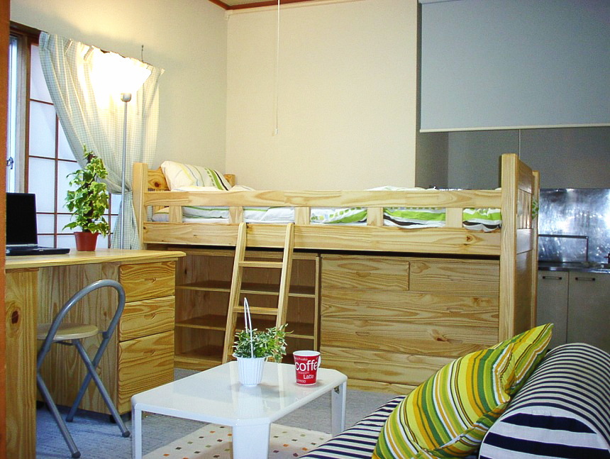 また、オプションとして 家具(ベッド・机・整理ダンス・本棚) をお付けすることができますので、これから初めて一人暮らしを始めるフレックス生にも お勧め です !!