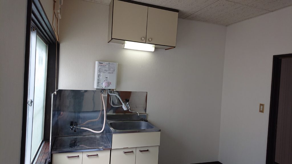 洋服ダンス が組み込まれている広い居室のあるお部屋です。給湯器新設いたしました。