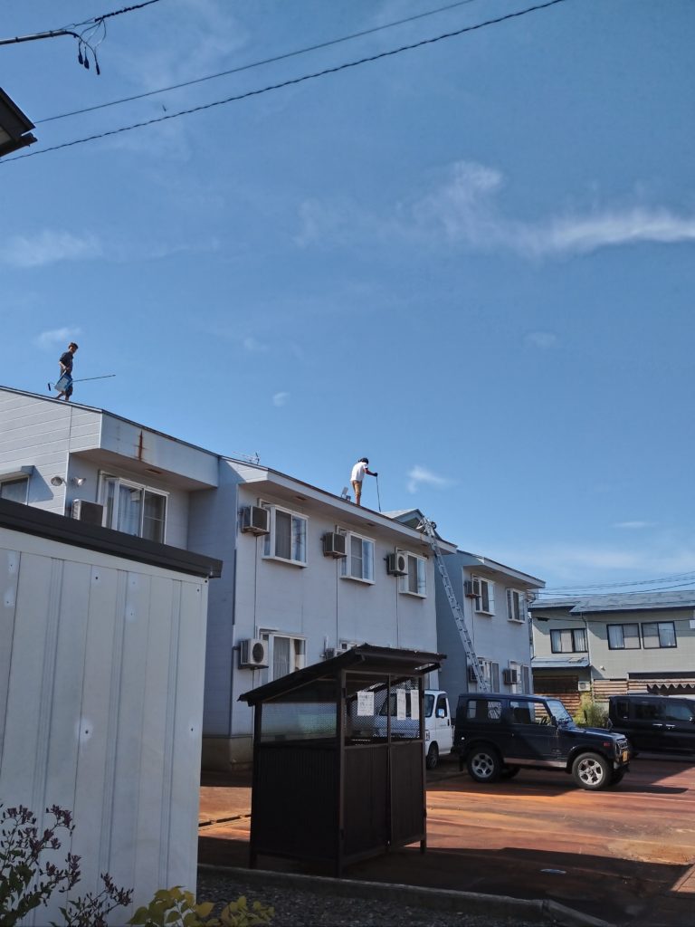管理室日記 天気がいいので… kojima-so 2021年10月4日 今日は天気が良いということで、 お兄さんたちがバンヴェールの屋根のペンキ塗りをしてくれています! キレイになるのが楽しみですね(^^) 今回、屋根の色を変えることになりました。 何色になるか楽しみですね☆ 塗り終わったら投稿したいと思います!!