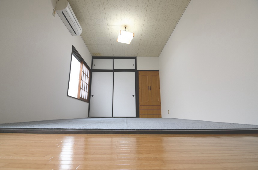 洋服ダンス が組み込まれている広い居室のあるお部屋です。給湯器新設いたしました。